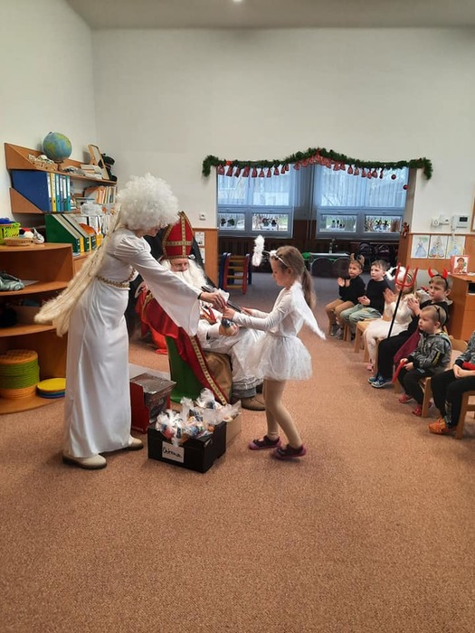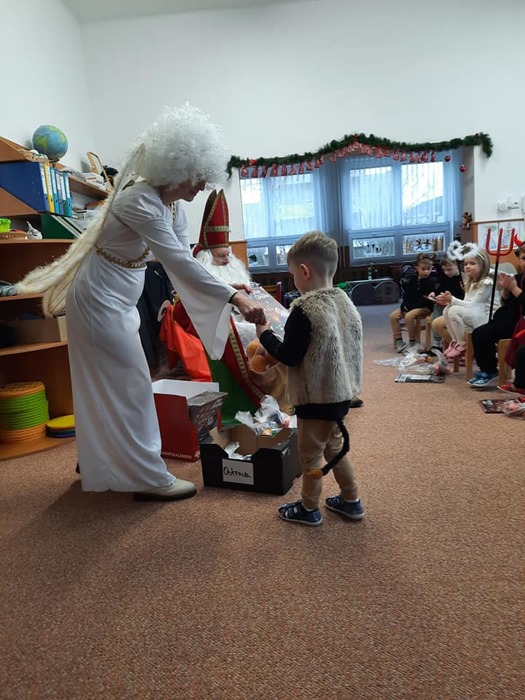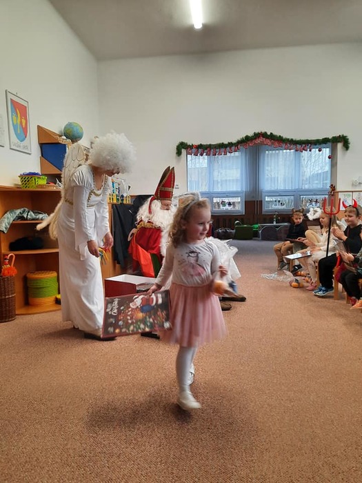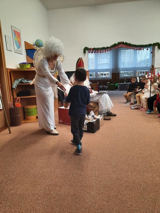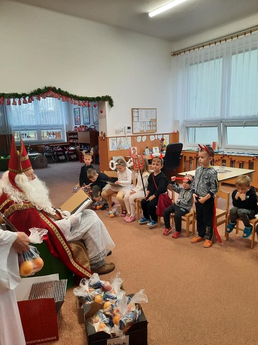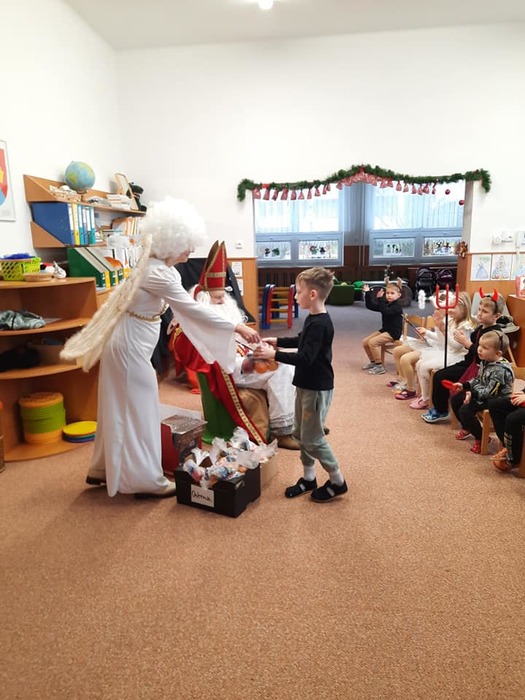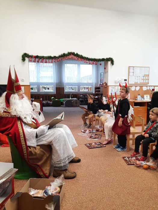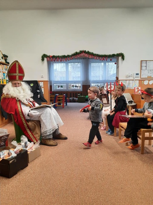 V pátek 6.12. 2024 přišel za dětmi do MŠ Svatý Mikuláš se svou družinou. Mikuláš otevřel svou Zlatou knihu a přečetl dětem jak byly celý rok hodné a co všechno se ve školce naučily. Dětem rozdal krásné balíčky s adventním kalendářem a děti za odměnu zazpívaly krásné vánoční koledy.