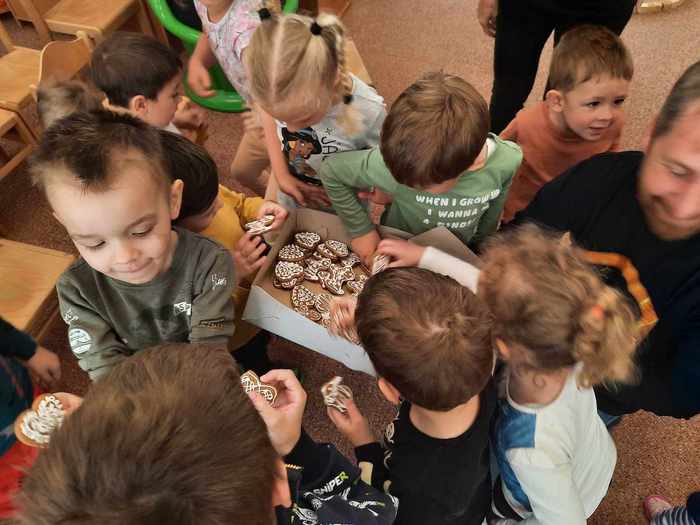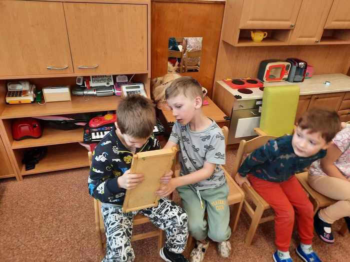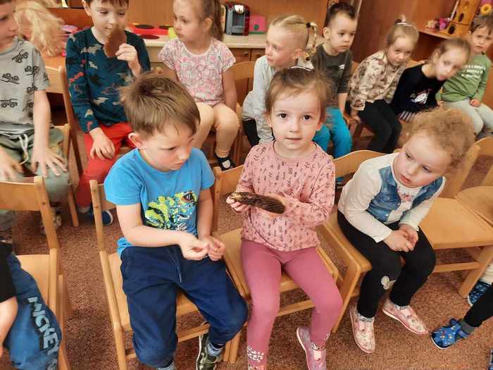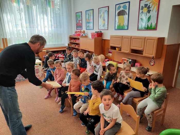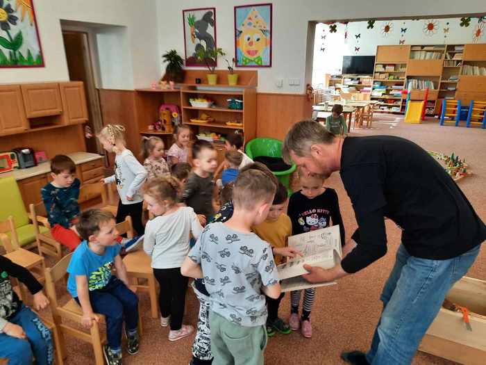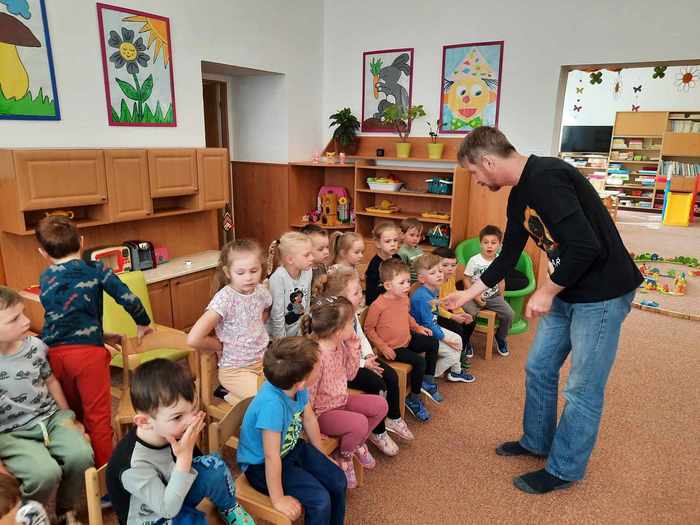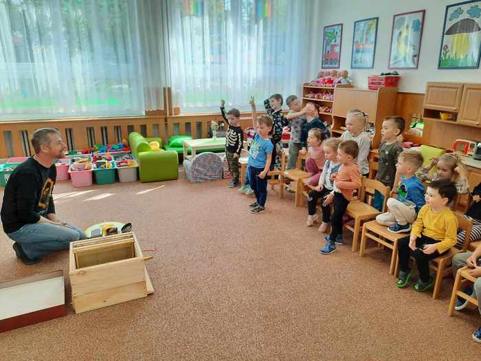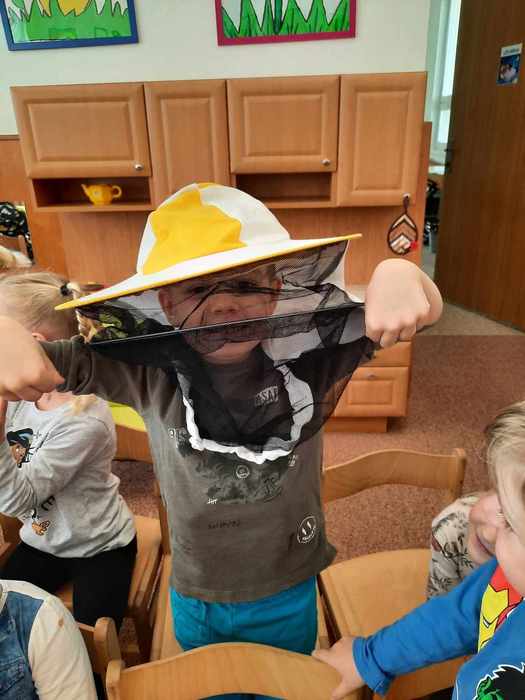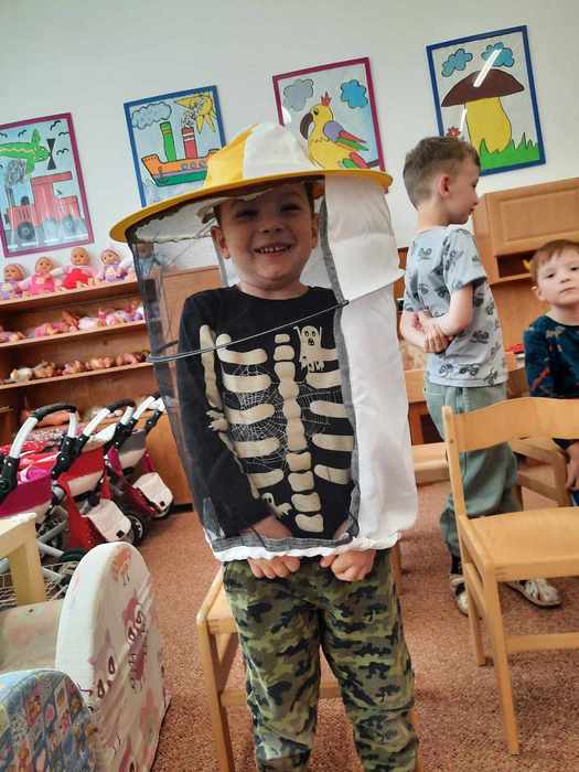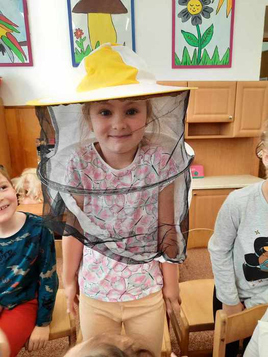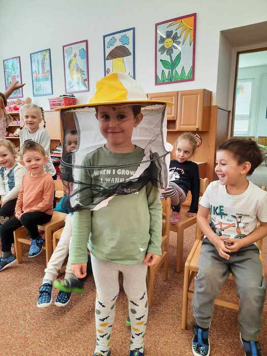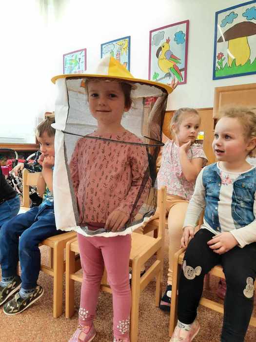 Ve čtvrtek 18.4. 2024 děti pozorovaly ve třídě pana Komoně, jak umí krásně vyprávět o včelkách a jaké přinesl dětem předměty, které včelky potřebují k tomu, aby vznikl med. Pan Komoň dětem přinesl i úl, med a medové perníčky. Dětem půjčil do MŠ knihu o včelkách, aby si ji mohly prohlížet a číst. Přednáška o včelkách byla moc hezká a zajímavá. Děkujeme.