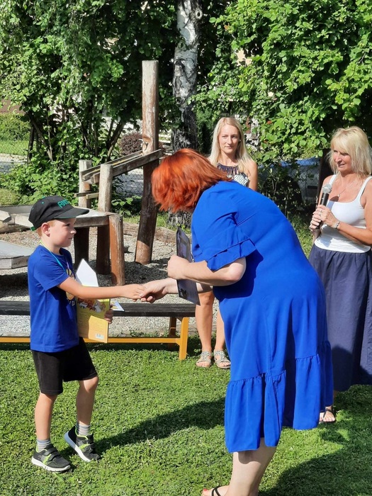 V úterý 25.6. 2024 jsme se na zahradě MŠ loučili s našimi předškoláčky. Děti dostaly nová barevná trička, pamětní listy, knížky a medaile. Společně jsme si zazpívali písničky, zatancovali a postupně každý složil školní slib a vstoupil branou ze školky do školy. Paní učitelky jako poděkování od rodičů dostaly krásné květinky a malinový dort. Na závěr jsme si opekli špekáčky.