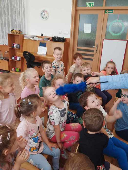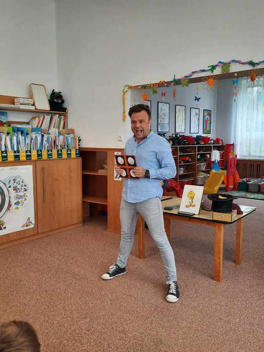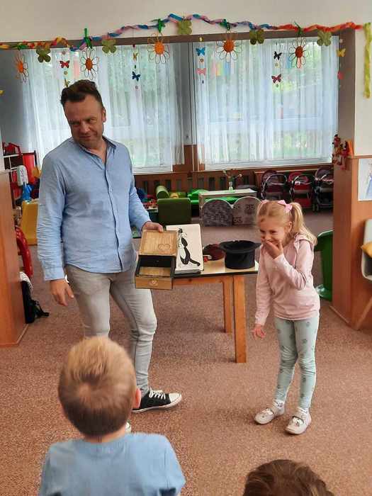 Dne 3.6. 2024 paní učitelky připravily dětem v MŠ - Oslavu Dne dětí. Nejprve děti dostaly nové hračky do třídy a na zahradu, potom měly nanuk a na závěr přišel za dětmi pan kouzelník ze Slováckého divadla - Tomáš Šulaj. Děti si celý sváteční den moc užily a těší se až si budou hrát s novými hračkami.
