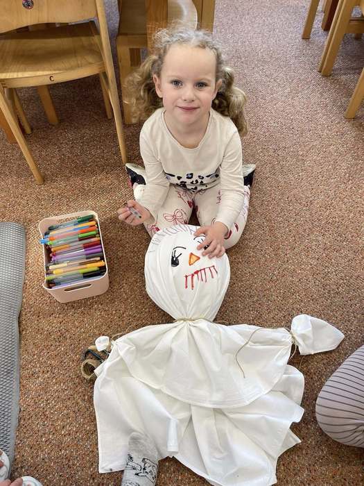 V pátek 11.4. 2025 jsme se byli s dětmi rozloučit se se zimou a přivítat jaro. Děti si ve třídě vytvořily moranu, pěkně si ji nazdobily, zazpívaly o moraně písničku a vypravily se na procházku. Cestou k potoku si vyprávěly tradice a zvyky, které moranu doprovází. U potoku moranu hodily do vody, aby odplavala a s ní i zima.