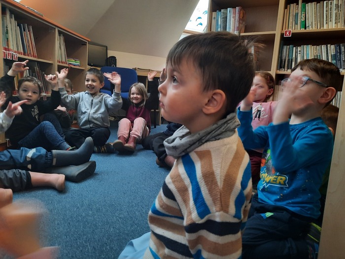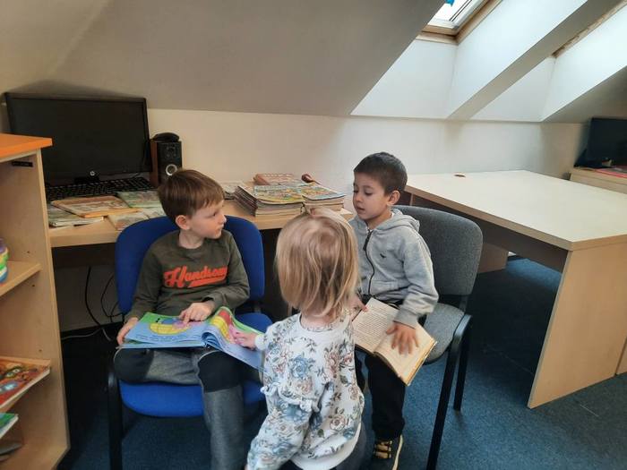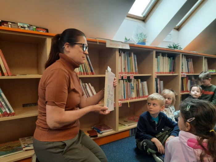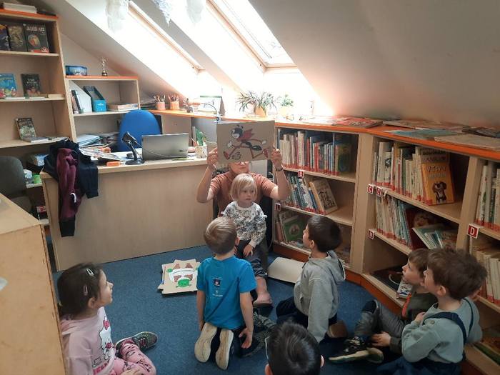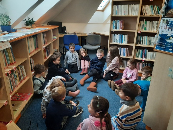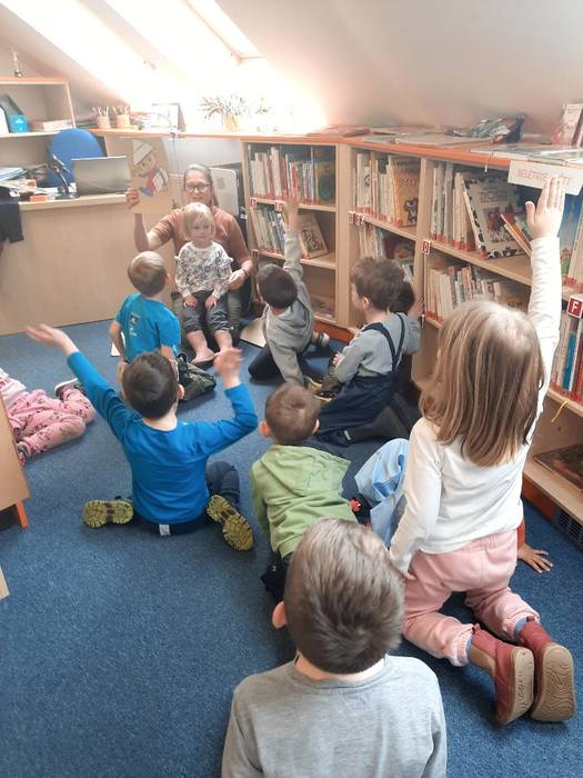 Děti navštívily místní knihovnu, kde dětem paní Tomečková četla z nádherné knihy o dětech. Děti měly možnost prohlédnout si knihy a vyprávět pohádky na základě přečtených knih. Návštěva knihovny se dětem moc líbila a děkujeme paní Tomečkové za krásné dopoledne.